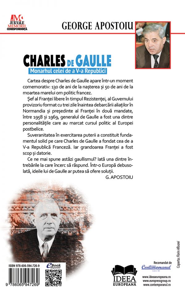 Cartea despre Charles de Gaulle apare într-un moment comemorativ: 130 de ani de la nașterea și 50 de ani de la moartea marelui om politic francez.